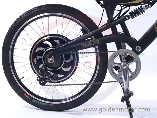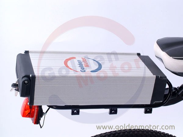 | Configuration: 1. Golden Motor® Aluminum Alloy bike frame -- (Black color) 2. New Magic pie V3 1000W Rear motor 26'' wheel 3. 48V10AH LiFePO4 battery with 3A charger 4. Water-proof integral wiring set with silver plated Plug-pins 5. Variable speed Thumb throttle with battery level indicator 6. Cruise speed control button 7. 6 speed Shimano Acer® derailleur & shifter system 8. Front & Rear disc brake system 9. 1:1 Pedelec Assist System(Speed sensor)(optional) 10. LED headlight&Tail light 11. Removable battery pack 12. Battery lock with key start Measurement: 145cm*30cm*82cm / Gross Weight: 41kg | |